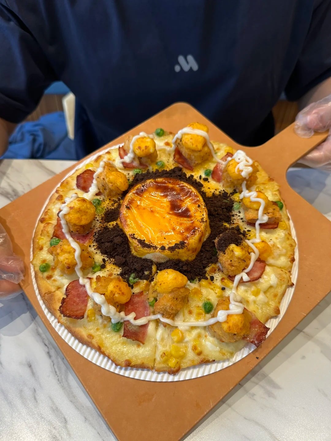 頂鮭豪牛大披薩+抹茶火山+起司火山口(雞條/鱈魚星星/薯球/蝴蝶酥)+可樂