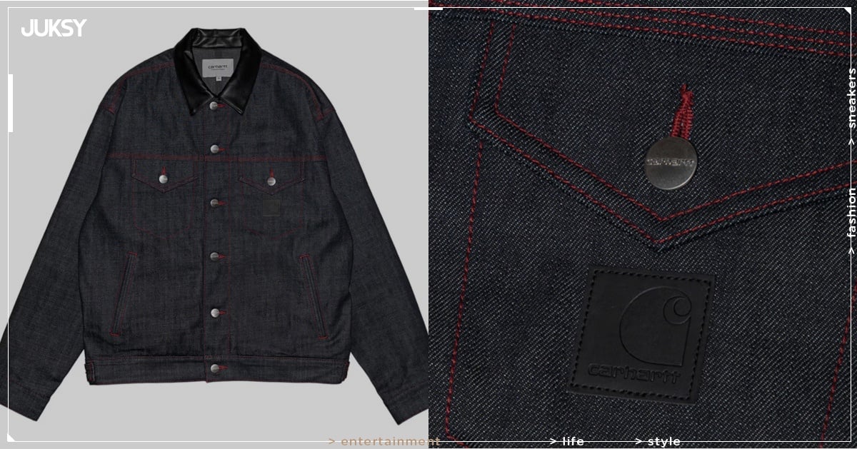 這次推出的丹寧外套以 Carhartt WIP 經典 Helston Jacket 為藍本進行重新演繹,整體採用寬鬆版型設計,保留品牌標誌性的剛硬質感與街頭風格。外套配置雙排扣胸前口袋與前側口袋,兼具實用機能與視覺層次,內裡特別加入保暖的毛毯內襯,搭配合成皮革領片設計,不僅提升冬季實穿性,更增添細膩的質感層次。最引人注目的設計亮點,莫過於外套結構線條處採用的紅色三重車縫線細節,這項充滿東方節慶氣息的設計元素,為硬派工裝風格注入喜氣洋洋的視覺語彙,展現品牌對於在地文化的細膩觀察與尊重。值得一提的是,原本 Carhartt WIP 標誌性的布標,在這次限定系列中改以低調奢雅的黑色皮革標牌呈現,透過材質與色調的轉換,營造出更為精緻內斂的品味美學,完美詮釋當代工裝時尚的優雅進化。這件外套不僅是實用的冬季單品,更是一件融合東西方美學、兼具功能性與設計感的時尚作品,展現 Carhartt WIP 在工裝領域的深厚底蘊與創新思維。13.5 盎司的重磅丹寧布料,經過精心挑選與處理,呈現出獨特的硬挺質地與自然色澤,隨著穿著時間增長,將逐漸展現個人化的刷色痕跡,成為專屬於穿著者的時尚印記。